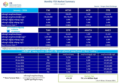 | Market Cap. (MMK) | 778,011 mil |